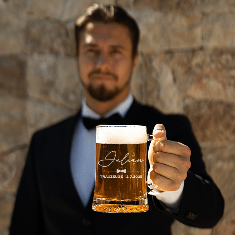 Was könnte ein lustigeres Dankeschön für den Trauzeugen sein als ein eigener Bierkrug mit Gravur? Der gravierte Bierkrug bleibt eine schöne Erinnerung, denn die Gravur ist dauerhaft und nutzt sich nicht ab oder verblasst.