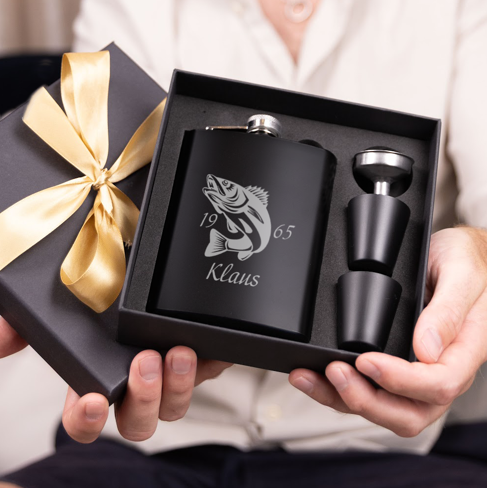 Flachmann-Set mit Gravur – Angeln