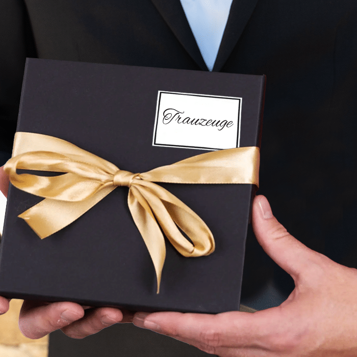 z. B. „Für den Trauzeugen“ (Lassen Sie das Feld leer, wenn Sie keinen Aufkleber benötigen).