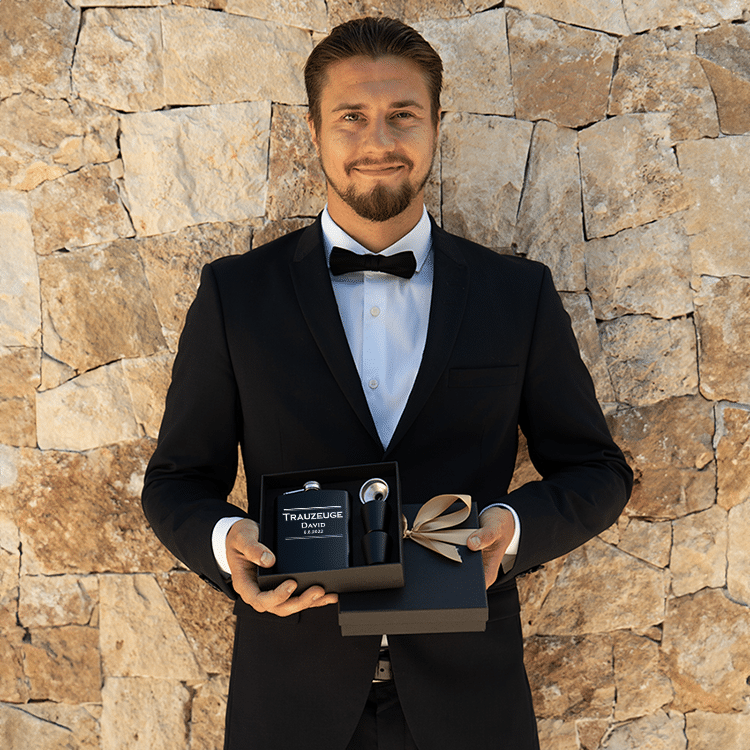 Flachmann-Set mit Gravur, Trauzeuge