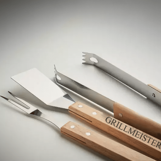 - 3-teiliges Grillset (Zange, Wender, Gabel)
