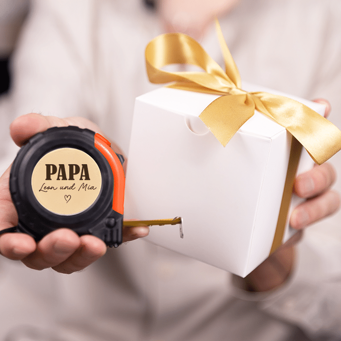 Ein Maßband mit Gravur ist ein originelles und zugleich praktisches Geschenk für jeden Heimwerker oder Bastler. Es ist auch ein großartiges Geschenk für Papa oder Opa zu Weihnachten. Das handliche Maßband verfügt über eine praktische Aufhängeschlaufe und einen Metallclip zur Befestigung.