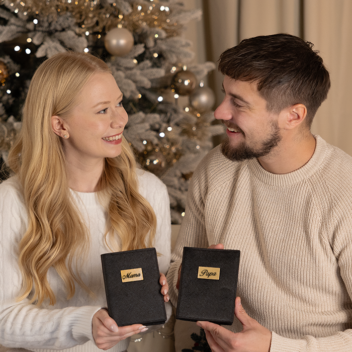 Reisepasshüllen mit Namen sind eine wunderbare Geschenkidee für Paare, die gerne reisen. Die schwarze Hülle mit einem goldenen Gravurschild ist ein schönes Gesamtbild, das man unterwegs gerne bei sich trägt und am Flughafen vor dem Abflug fotografiert. Du kannst dich von der fertigen Idee inspirieren lassen oder einen ganz individuellen Text gestalten.